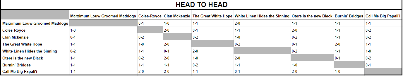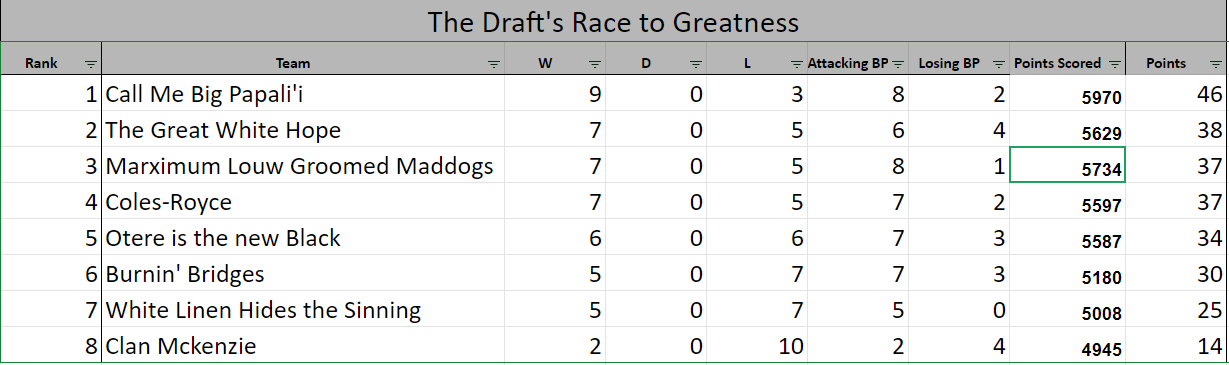 With week 12 we start the first round of ‘lasts match-ups’, From this week we play each manager once more before both the Super Rugby and OG Draft League finals, so bragging rights are now well and truly on the line.